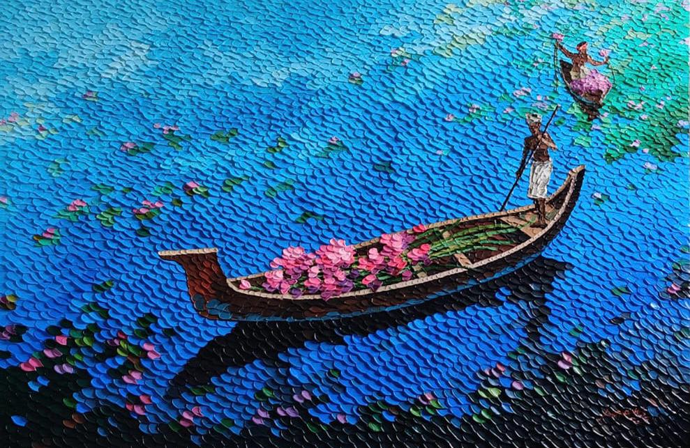 Her works are characterized by expressive textures, confident strokes, and a powerful sense of form and movement. Through the palette knife, she builds layered surfaces that bring depth, energy, and emotion to her paintings, creating a distinctive visual identity.